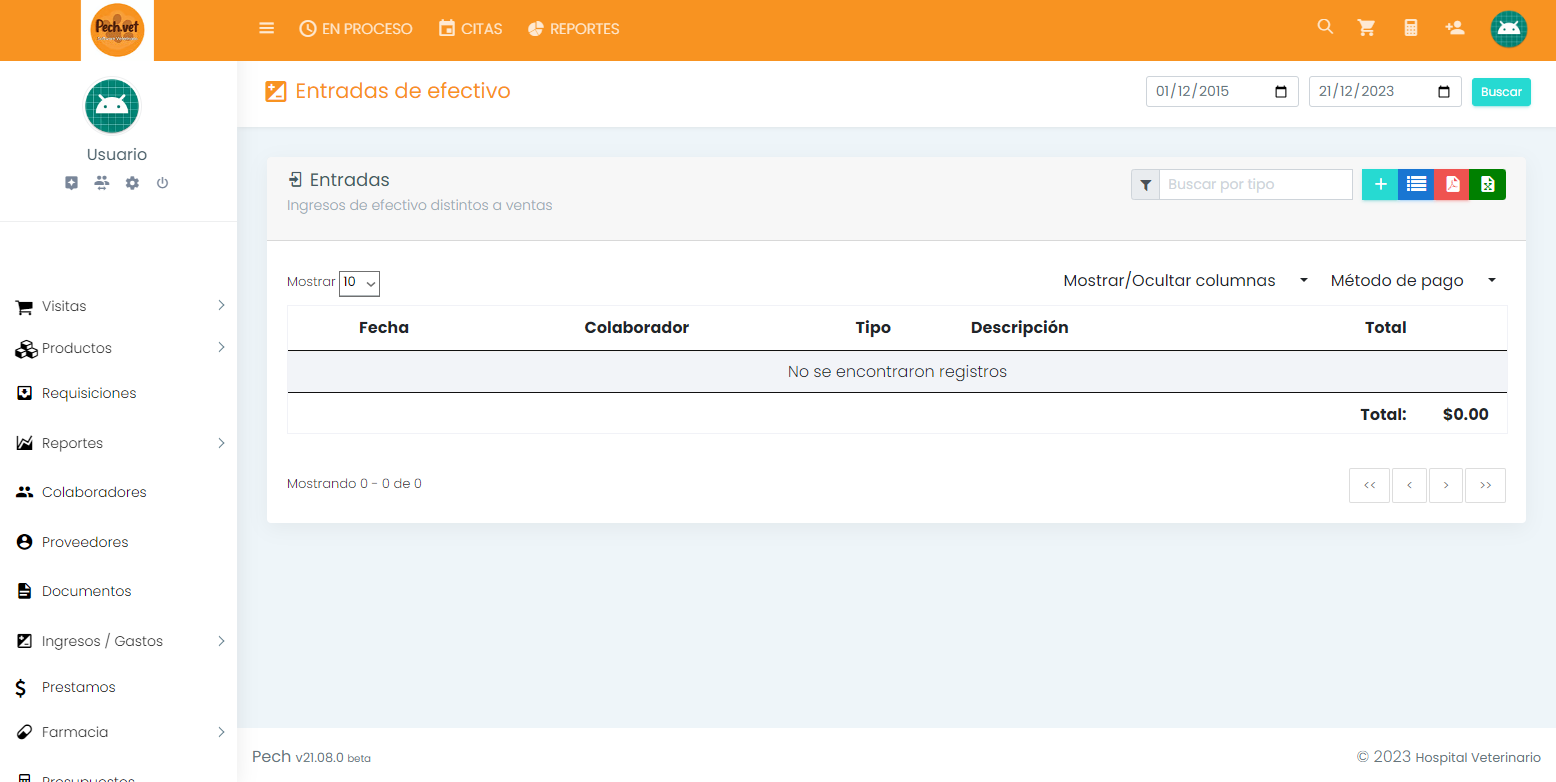 Pech facilita el arqueo de caja diario, permitiéndonos verificar y conciliar de manera precisa los ingresos y egresos de efectivo. Esto asegura una contabilidad precisa y transparente, fundamental para mantener la salud financiera de nuestra veterinaria.